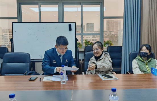 东荣大厦908会议室举办海军工程大学博士研究生专场招聘会,海军工程大学政治理论系韩宁老师来院做招聘宣讲,研究生辅导员于洋老师和博士生代表参加宣讲会。