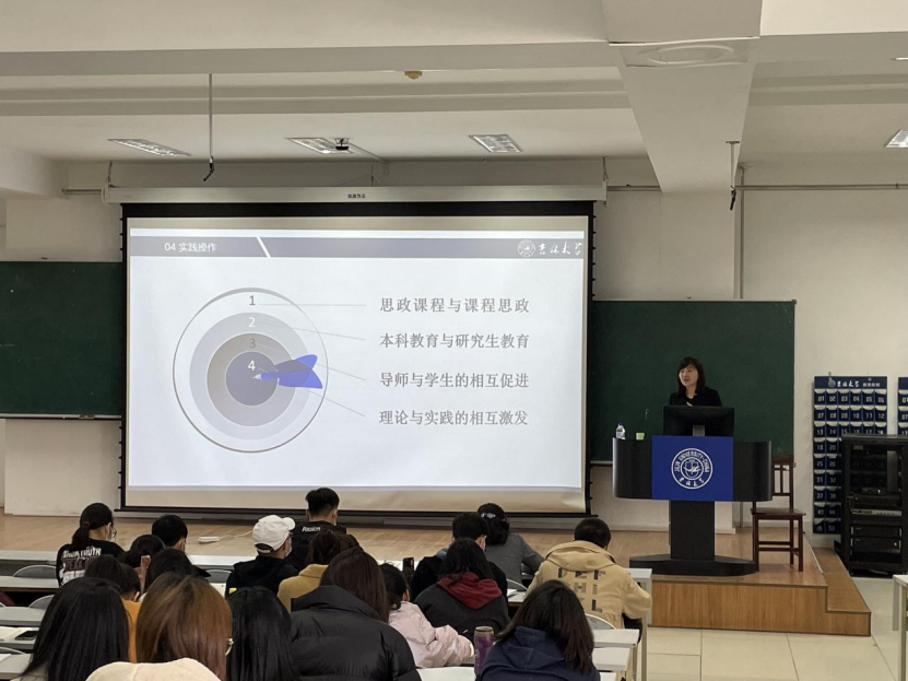 曲红梅教授以“学术研究与学人道德”为题,从学术传统、相关文件、科研伦理、实践操作、我们的目标这五个方面向2021级研究生新生同学做了科学道德和学风教育。