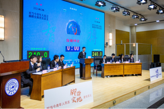 首届“智搏杯”辩论赛开赛以来,共有 11支队伍、82名辩手参赛,13位教师带队指导,21名来自各学院的学生评委和5位教师评委参与评判。经过9场激烈比拼,2021级2班代表队与2021级4班代表队脱颖而出,进入决赛。