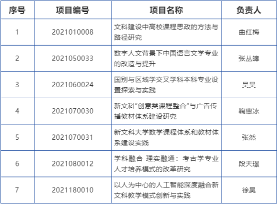 为深入学习贯彻习近平总书记关于教育的重要论述,全面推进新文科建设,构建世界水平、中国特色的文科人才培养体系,根据《教育部办公厅关于推荐新文科研究与改革实践项目的通知》要求,教育部组织开展了新文科研究与改革实践项目申报评审工作,共认定首批教育部新文科研究与改革实践项目1011个。
