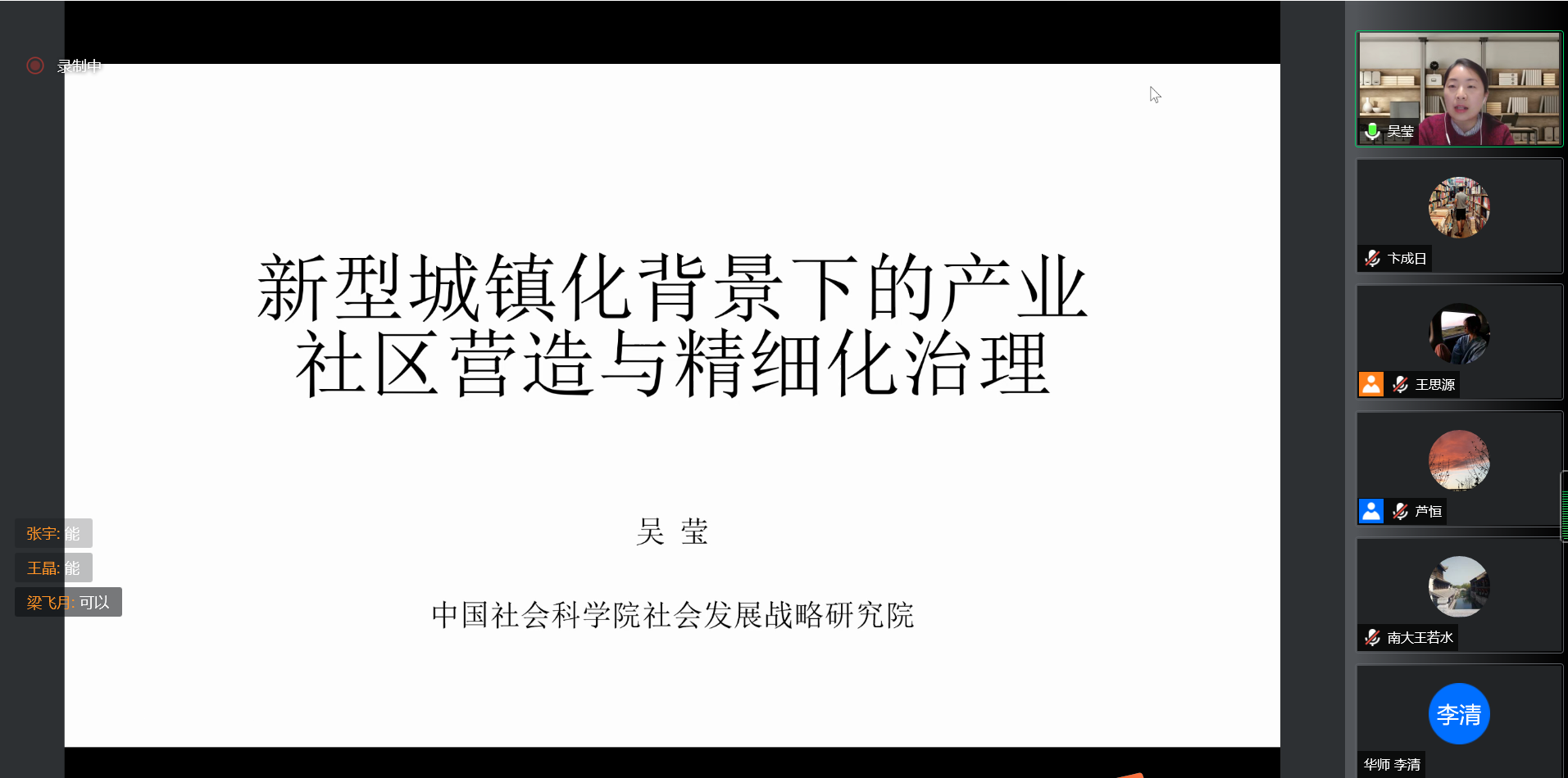 讲座尾声,吴莹副研究员与学生在新型产业社区的功能、产业社区与传统社区的区别、产业社区的产权问题等方面展开了热烈的讨论。芦恒教授指出,产业社区研究作为城市社会学的一项新领域,拥有着较大的研究空间,从吴莹研究员对产业社区严谨细致的分析中显现出社会学的想象力。