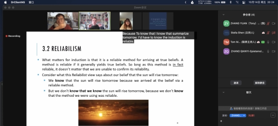 本次项目包含一次先导课、五次导师课以及两次公共课。在先导课破冰之后,学生们根据个人学术志愿与方向被分为三组,分别与各自的导师开展为期五周的导师课程。尽管不能同教授面对面线下交流,但借助线上会议平台,学生们仍然收获了良好的课程互动体验与参与满足感。三位导师会在每次课前将课件、阅读材料一并整理并发送给课程助教,方便学生们提前预习和课后复习课堂内容,每一位学生都认真完成了相应的预习阅读和复习打卡。在批判性思维课程中,学生们同海拉尔教授展开积极的互动,高效准确地回答教授的问题,并按照要求开展小组讨论,在海拉尔教授风趣幽默的语言中,学生们更深刻地了解了批判性思维在学术工作中的作用。