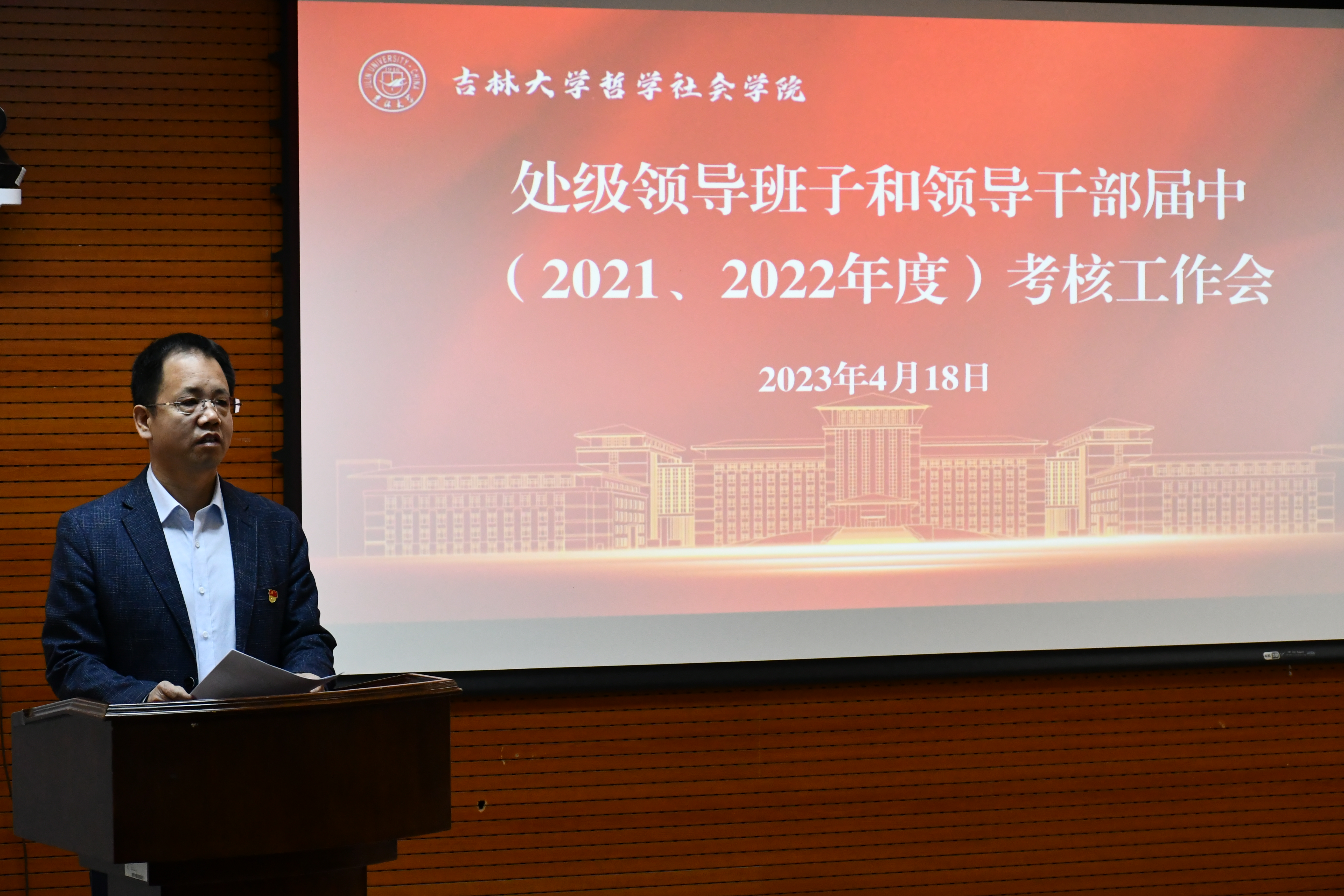 党委书记李佰志围绕德、能、勤、纪、廉五方面内容进行了现场述职。根据学校相关规定,副处级领导干部可直接进行书面述职,述职报告已于4月17日通过邮件方式公布,并向学院全体师生征集意见。