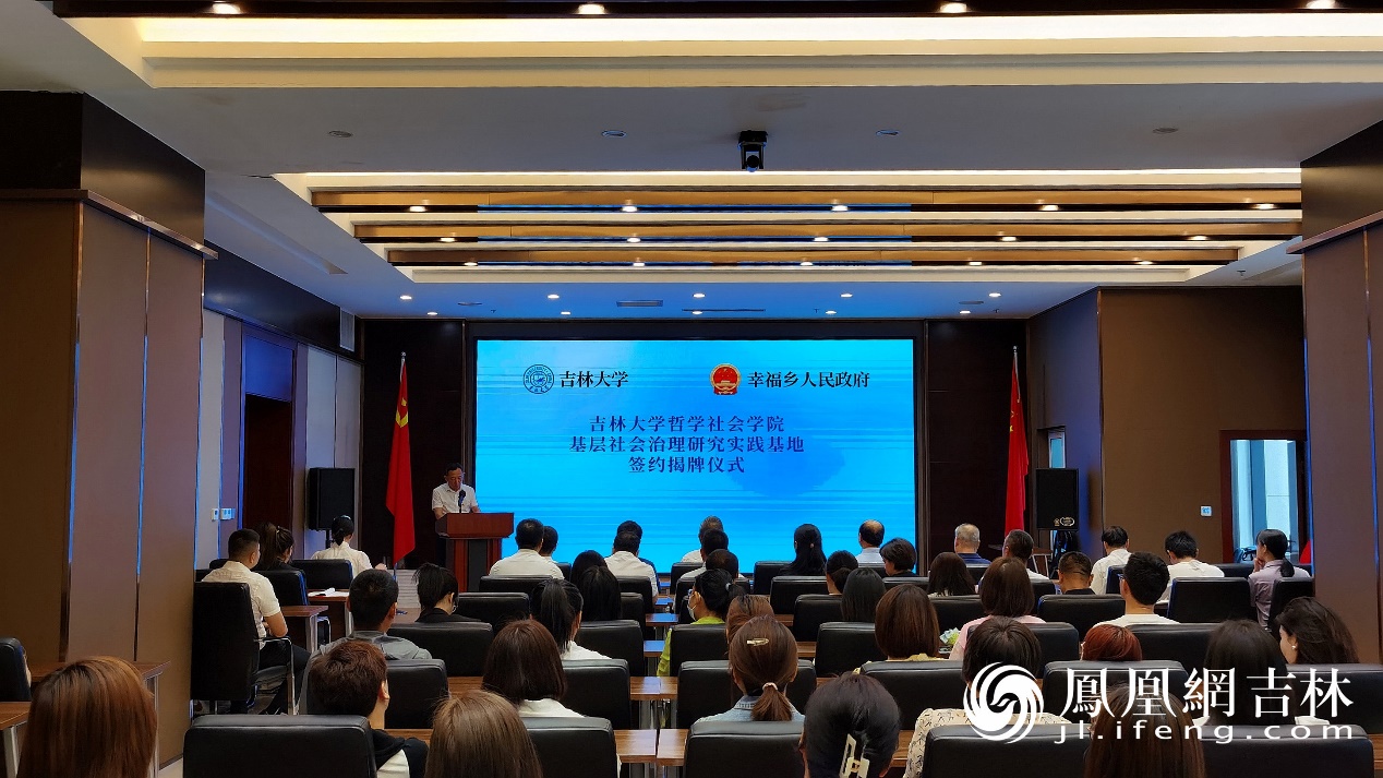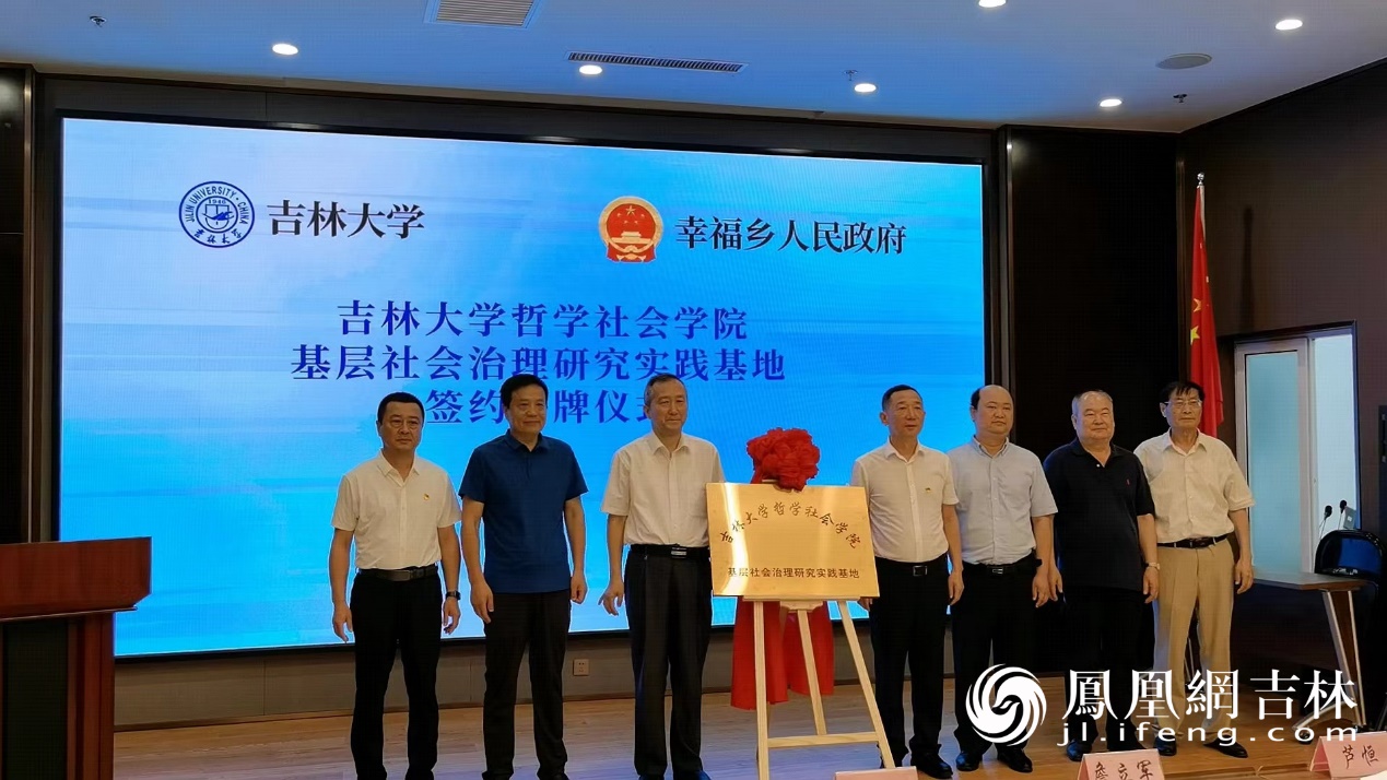 教授田毅鹏与幸福乡党委书记詹立军共同为“基层社会治理研究实践基地”揭牌。田毅鹏教授与幸福乡孙超乡长签订了合作备忘录。