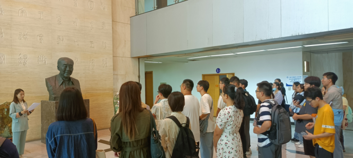 2023年“美道慎行”哲学夏令营全体营员来到东荣大厦一楼,瞻仰哲学系资深教授高清海先生的塑像。开心鬼传媒