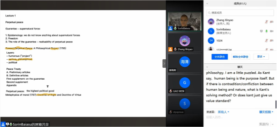国际化示范基地海外优质课程于线上成功举办。主讲人为来自英国基尔大学的Sorin Baiasu教授。