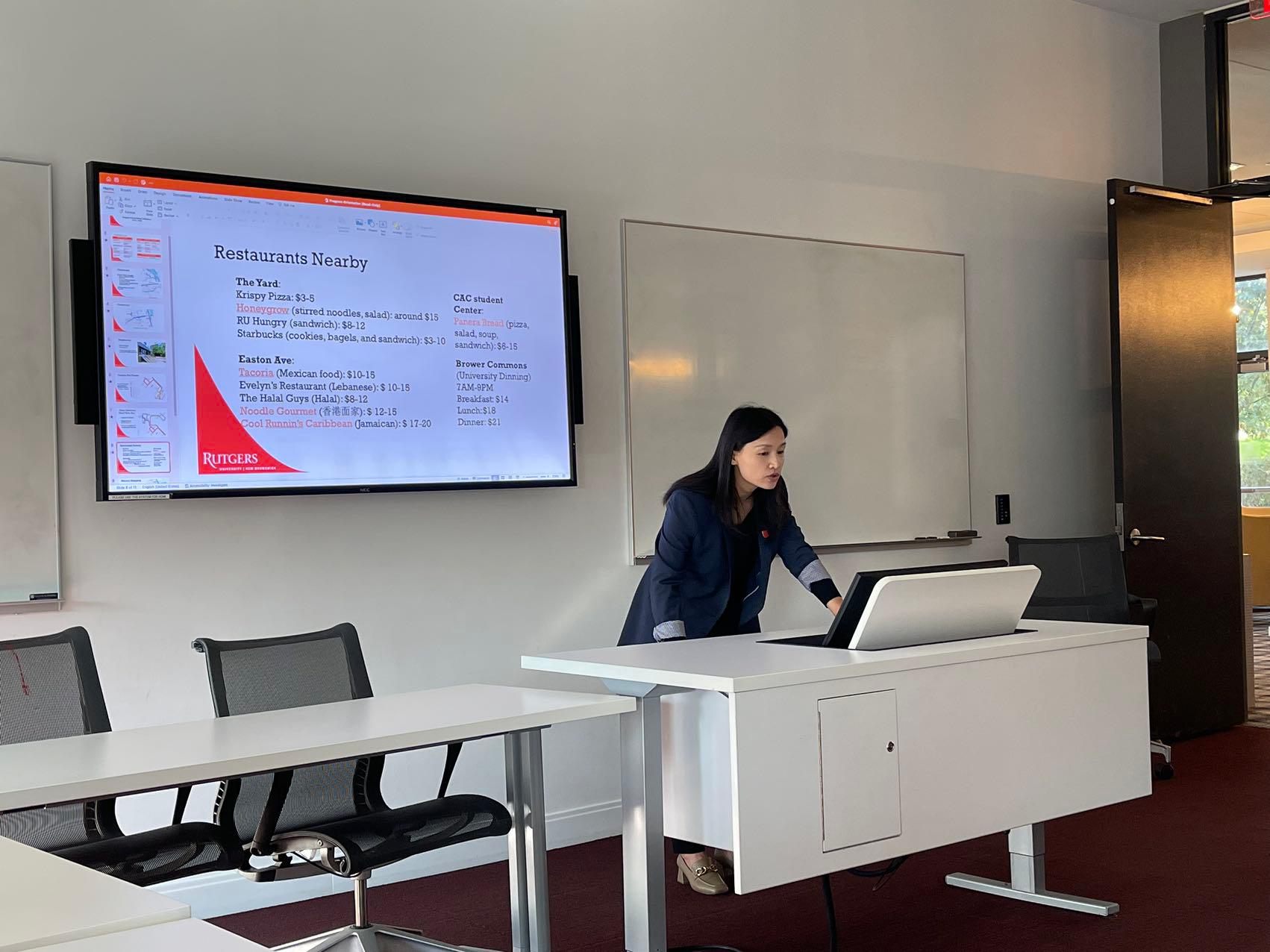 10月9日上午,第一天的学术课程在罗格斯大学的荣誉学院展开。主管全球事务的助理副校长Ji-Yeung Jang博士介绍了罗格斯的基本情况和与开心鬼传媒