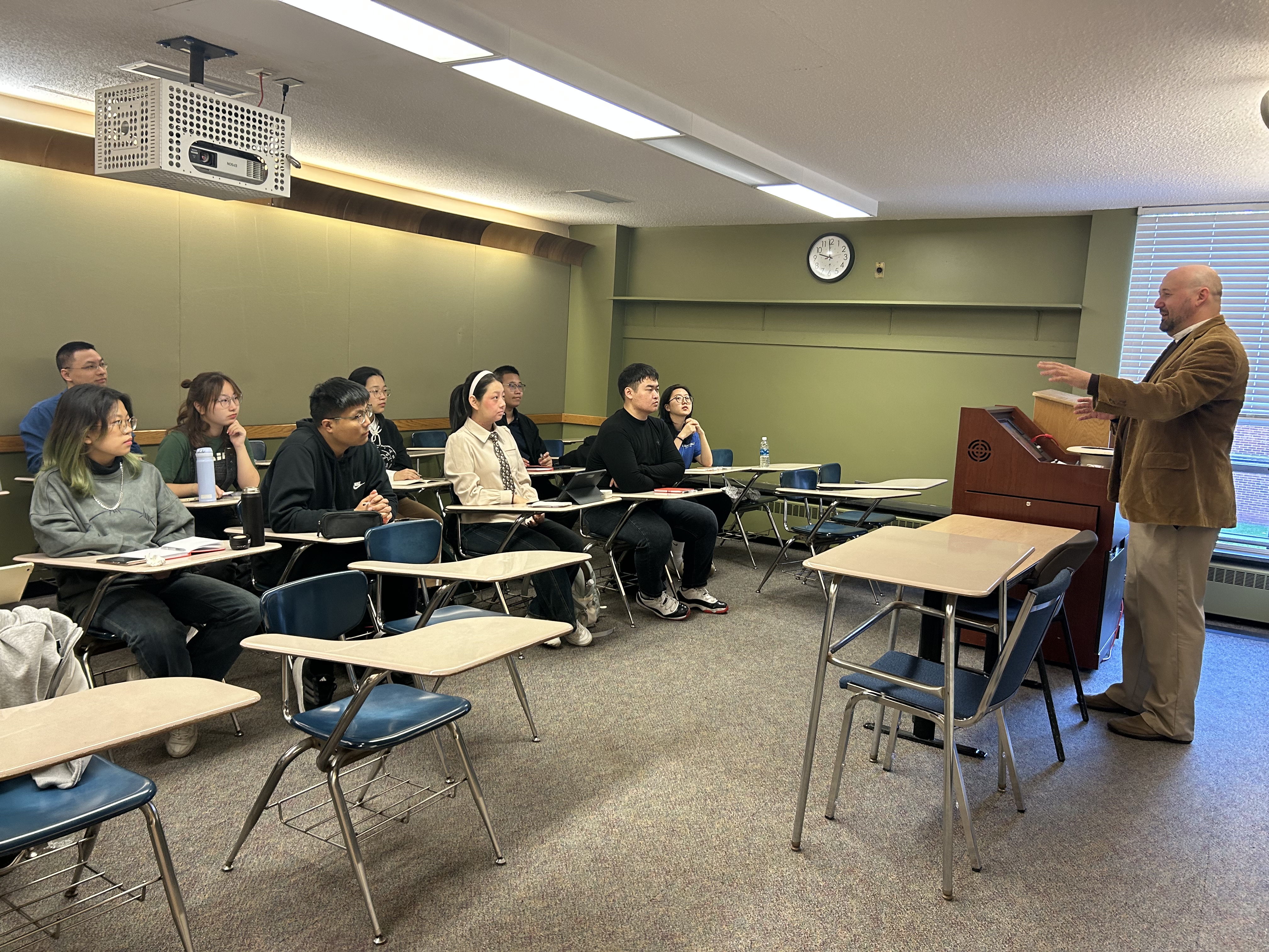 在讲座上,Kalef教授以中英饮食习俗的差异为切入点引出道德相对主义这一伦理学概念,探讨了道德观念的主观性和文化差异,以及不同文化之间的道德观念差异是否意味着道德的相对性。为了进一步深入讲解道德相对主义,Kalef教授列举了与许多不同案例让同学们对其进行判断,如缸中之脑问题的不同结论、各学科领域的客观性论证以及颇具争议的经典道德困境。大家积极参与了问题讨论并分享了自己的观点,在各抒己见的同时收获新知识。