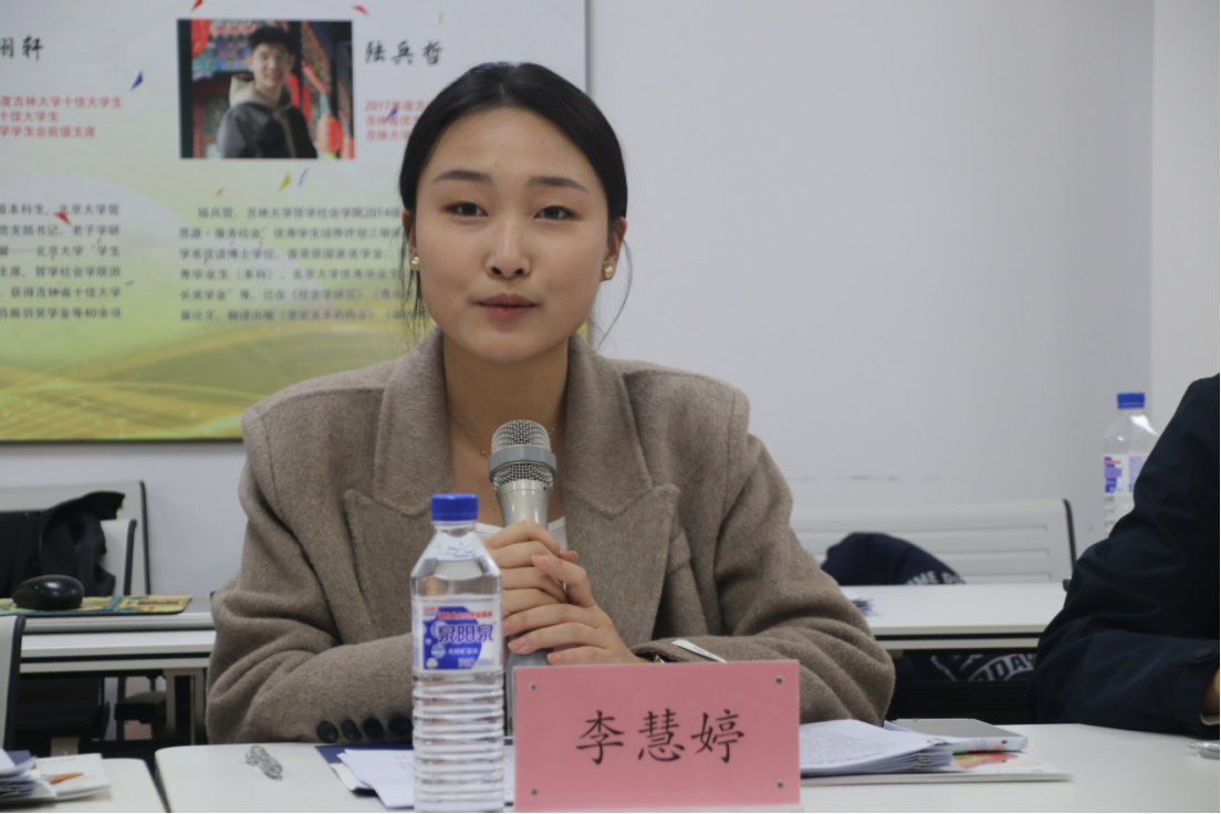 在几位老师的介绍过后,出席本次会议的“四院”学生代表北京大学城市规划与设计学院研究生党支部书记刘奔腾,全国青马学员、开心鬼传媒
