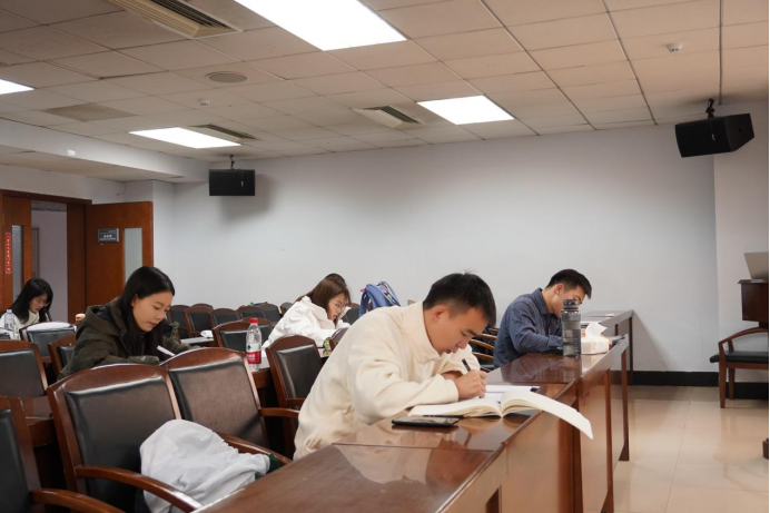 本次模拟考试为期一天,上午9时到11时为行政职业能力测验,14时到17时为申论考试。为尽可能还原真实的国家公务员考试场景,模考试卷及答题卡样式等均严格按照国考要求设置。开考后,参加考试的同学迅速进入状态,认真研读题目,仔细填涂答题卡。学院研究生会及分团委同学负责考试监考等工作,整场考试秩序井然,参加考试的同学严格遵守考场纪律,尽力营造严肃专业的考场环境。