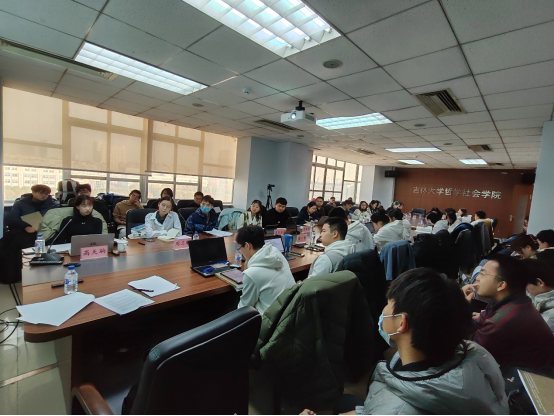 在同学们都做完论文展示和互评之后,盛传捷副教授和郝志昌副教授分别进行了评论。盛传捷副教授指出,学术论文的目的一是对学界的现有观点有不同意见,二是认为某些观点应当受到学界的重视,三是觉得现有的解释有缺陷。观点的争论是学术论文的灵魂与价值所在,同学们应该明确这种意识并且应当在学术论文中有所反映。郝志昌副教授认为大家的论文既有立足真实的文本基础体现出了文本的文献价值,同时也有立足真实的问题揭露文本的思想精髓体现出了文本的思想价值。上午的论文分享与点评在热烈的掌声中圆满结束。