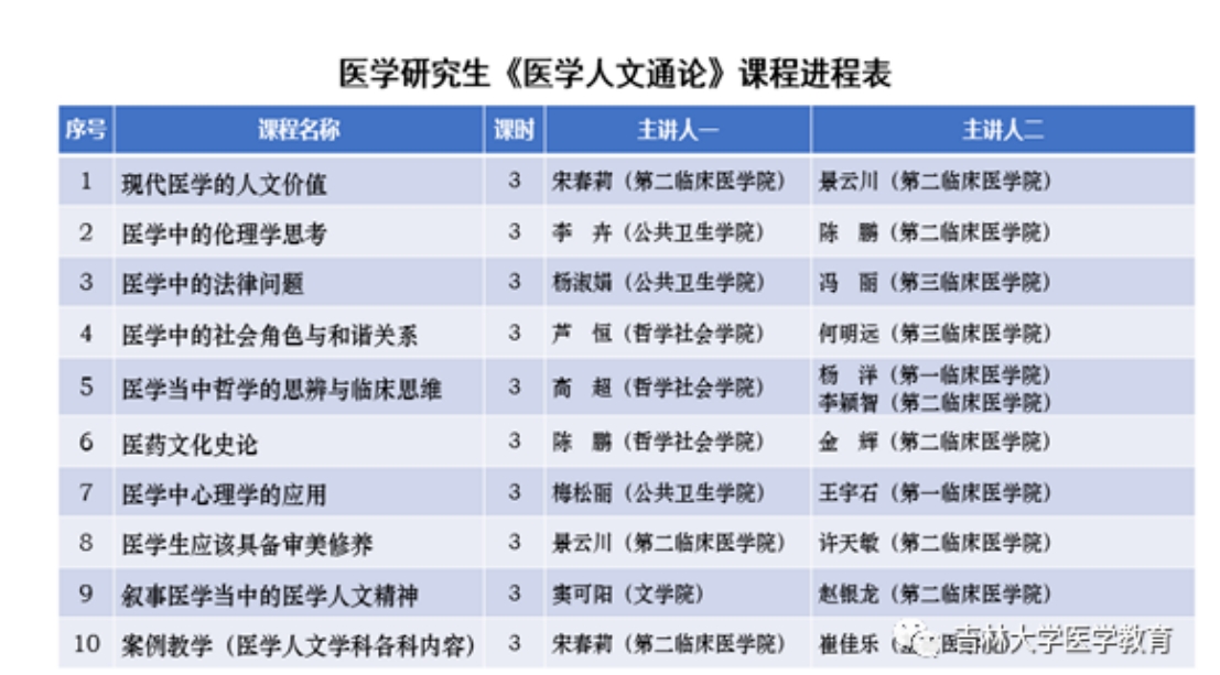 医学教育公众号2023年11月13日推文“医学人文课程改革新进展:《医学人文通论》研究生课程完成首轮教学工作”)