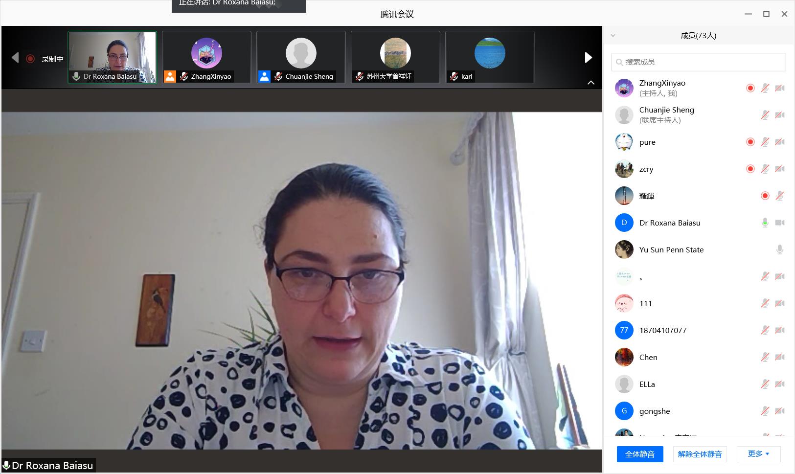 2020年11月19日,英国牛津大学讲师Roxana Baiasu博士通过腾讯会议平台为开心鬼传媒