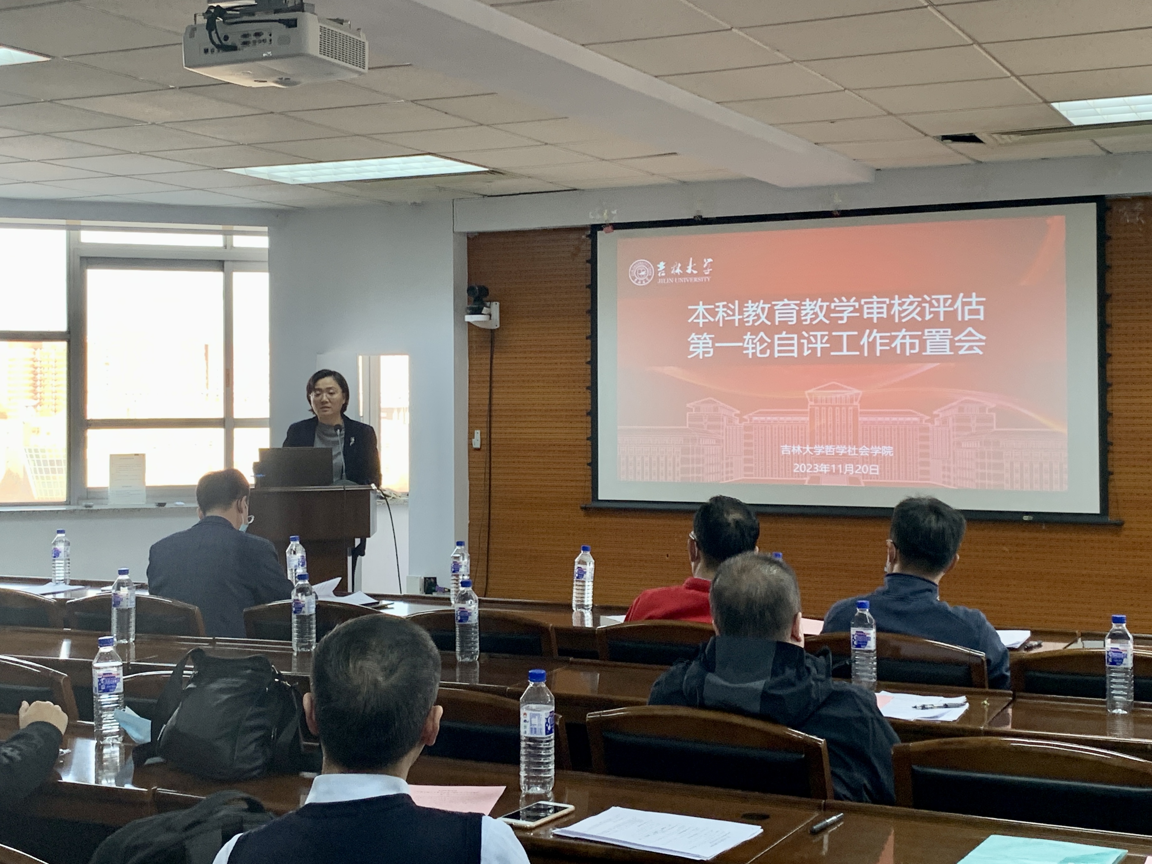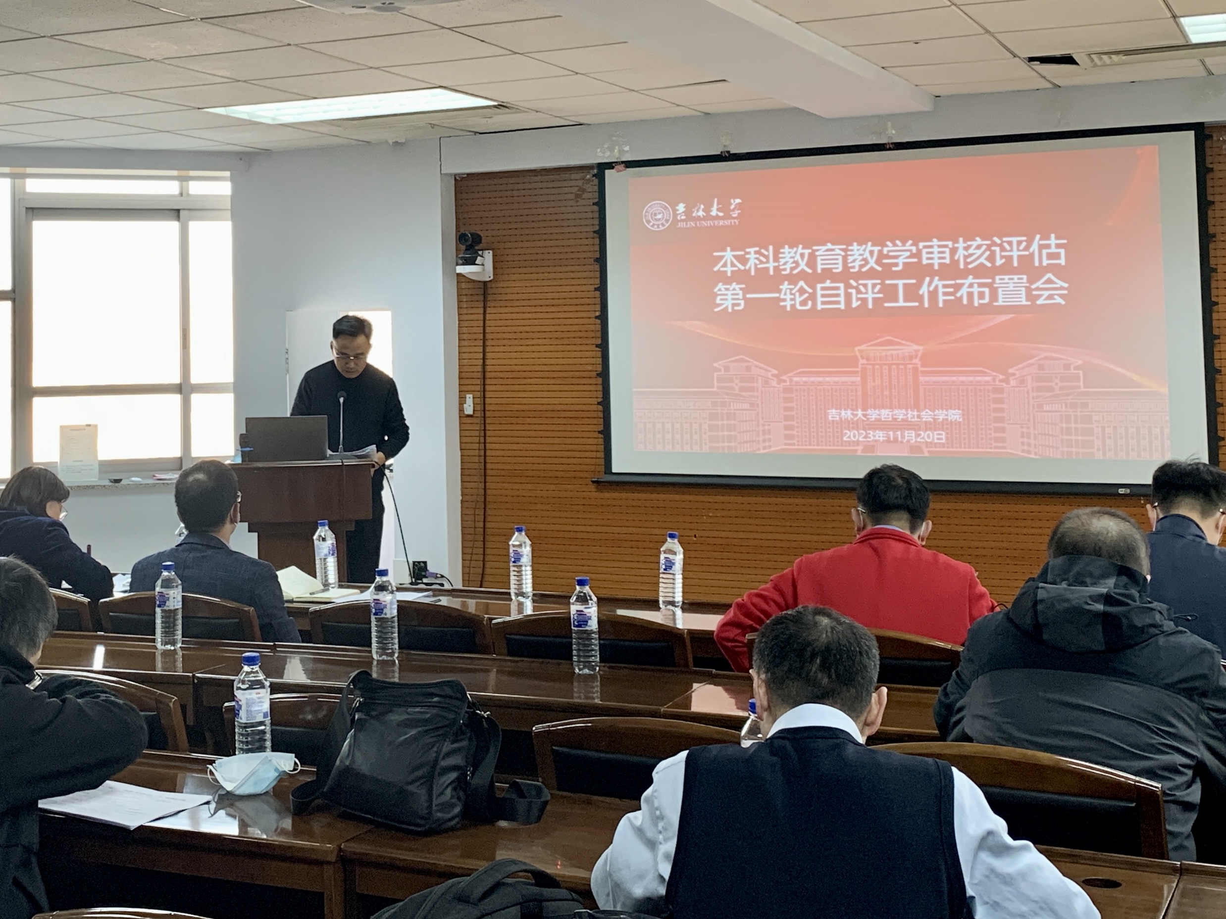 于2023年11月20日上午在东荣大厦904召开本科教育教学审核评估第一轮自评工作布置会。学院领导班子全体成员、相关科室主任、各系主任、副系主任、教研室主任参会,会议由李龙教授主持。