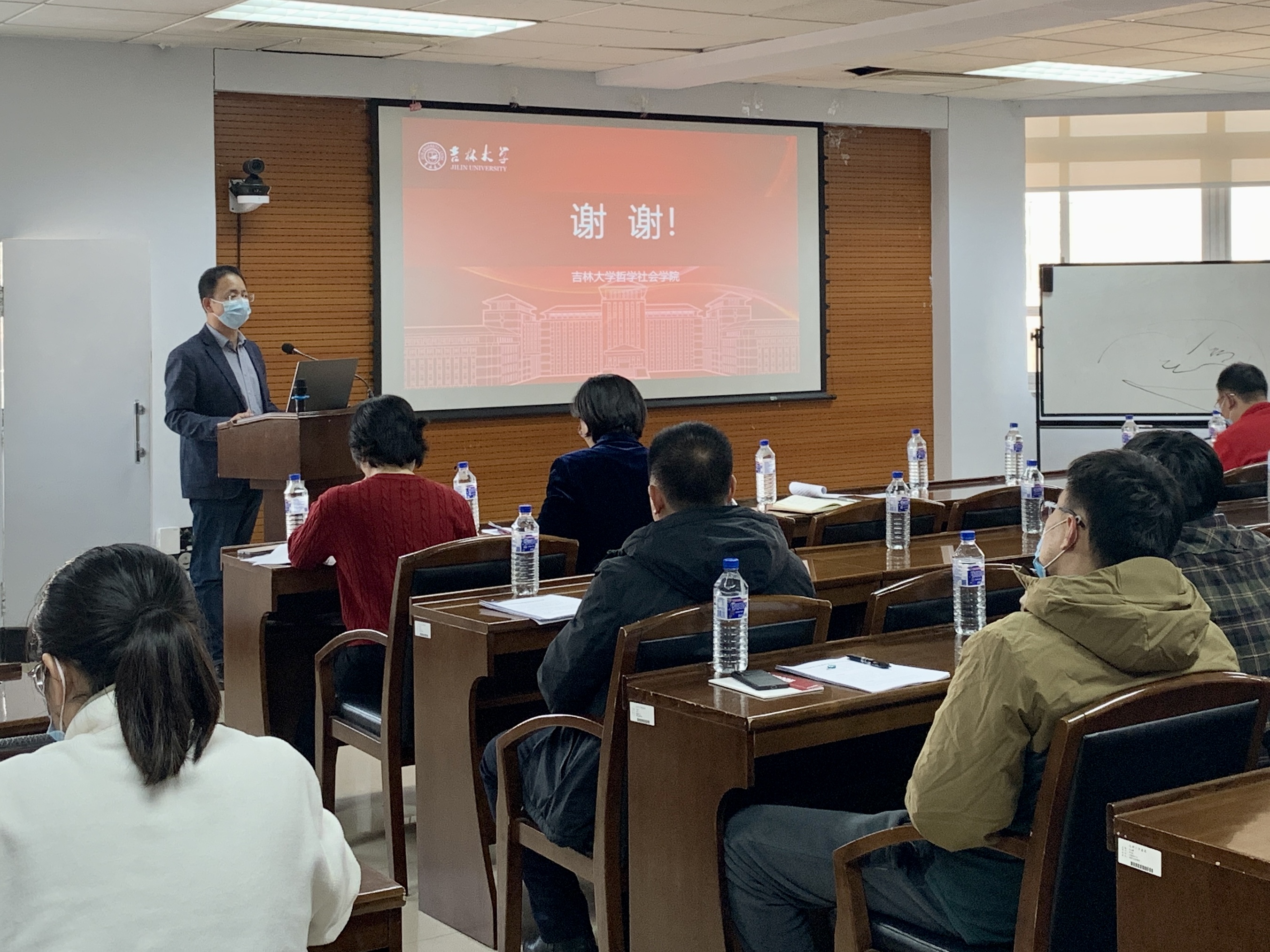 接着,院长白刚教授对学院本科教育教学审核评估工作提出总体要求。他指出,要将“以科研支撑教学,用理论铸魂育人”的学术思想和教学理念贯穿到教育教学审核评估工作中,凸显我们的特色。要深刻理解、准确把握新一轮审核评估的要求,将此次本科教学审核评估看作是对学院教学和人才培养的一次检验。要坚决贯彻落实学校的总体部署和要求,将工作落到实处,扎实做好迎评促建各项工作,切实做到“以评促改、以评促建”。