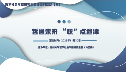 于2023年11月30日19:30举办研究生就业指导系列第三期活动——哲通未来 “职”点迷津 事业单位入职经验分享会。研究生辅导员于洋老师,学院研究生会(分团委)成员及各年级研究生参加会议。