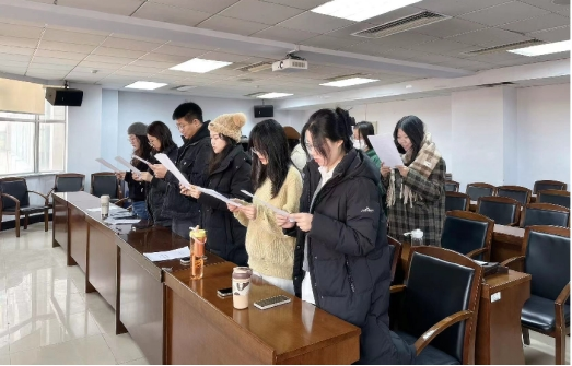 于2023年12月4日上午9点在东荣大厦904举办“宪法晨读”活动。本次活动由学院分团委副书记王馨颍主持,研究生辅导员于洋老师和部分研究生参加本次活动。