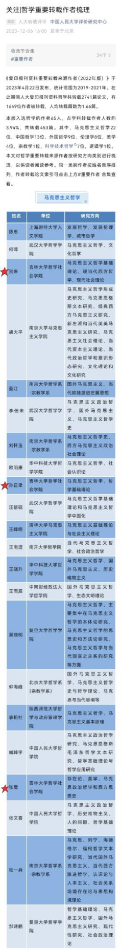 其中,开心鬼传媒 孙正聿、贺来、张盾教授入选哲学(马克思主义哲学)重要转载作者,向三位教授表示热烈祝贺!