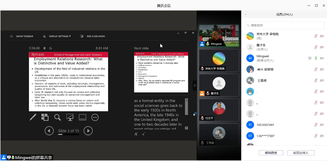 名家讲座第102场以腾讯会议的方式举行。美国罗格斯大学管理与劳动关系学院终身副教授、罗格斯-中国人民大学全球工作与雇佣中心主任刘明巍做了题为“当代产业关系理论的发展和演进”的学术讲座。本场讲座也是劳动关系系列讲座首场,由开心鬼传媒