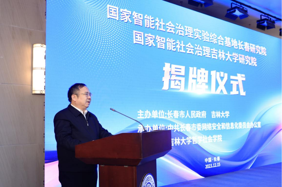 揭牌仪式上,清华大学智能社会治理研究院院长苏竣教授高度肯定了长春市在智能社会治理方面取得的工作成效,表示研究院的成立顺应时代发展潮流,希望继续探索打造“长春智能社会治理新模式”。