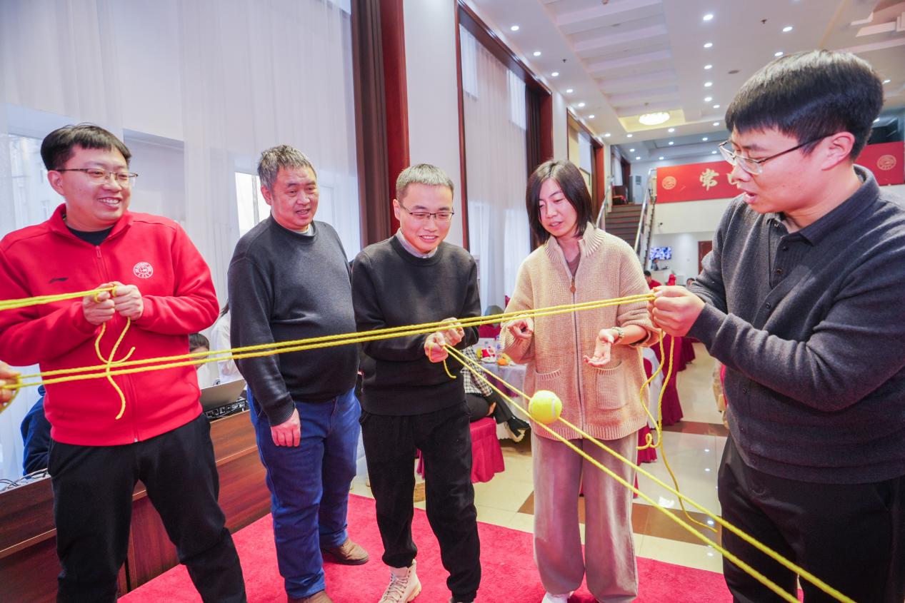 叶层层成荫,木棵棵成林,大家肩并肩努力,团结造就美好明天。接下来,进入到新一轮的游戏环节:“纵横交错”。参赛人员分别组成队伍,商量战术,彼此鼓劲打气,顺利完成挑战。现场笑声不断,老师们的“神操作”也成功将氛围推向高潮。