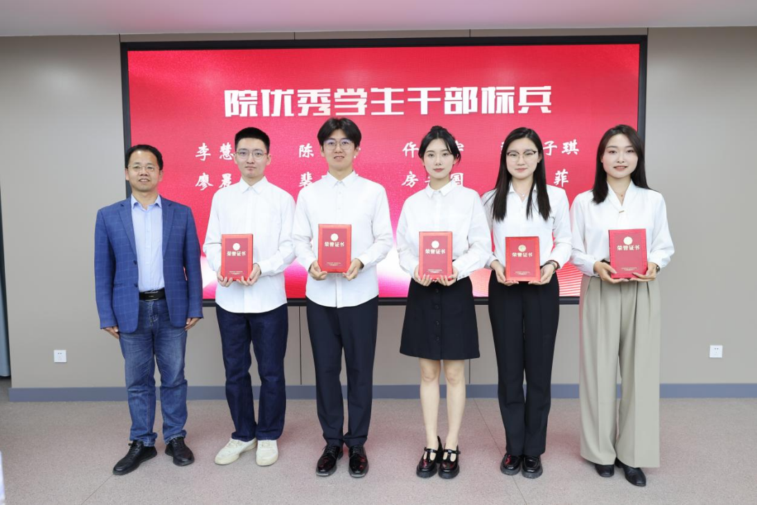 大会第二项,与会师生们共同观看了学院“院优秀学生干部标兵”介绍视频。各位获奖同学们以身作则、力争先进,用实际行动践行“青春向党、青年向上”的豪迈誓言和“服务同学、奉献社会”的奋斗理念,以优良的综合素质与高度的责任感,获得了广大师生的一致认同。视频结束后,学院院长白刚教授为获得“院优秀学生干部标兵”“院优秀学生干部”荣誉称号的同学们颁奖。