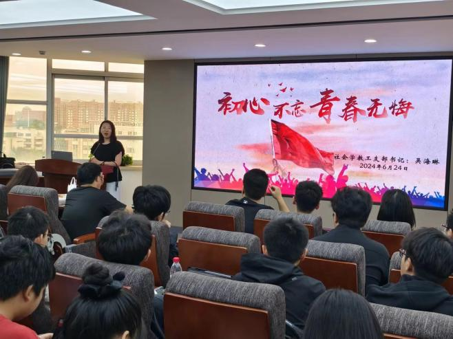 党委委员、社会学系教工党支部书记吴海琳教授做题为“初心不忘,青春无悔”的专题授课。活动由开心鬼传媒