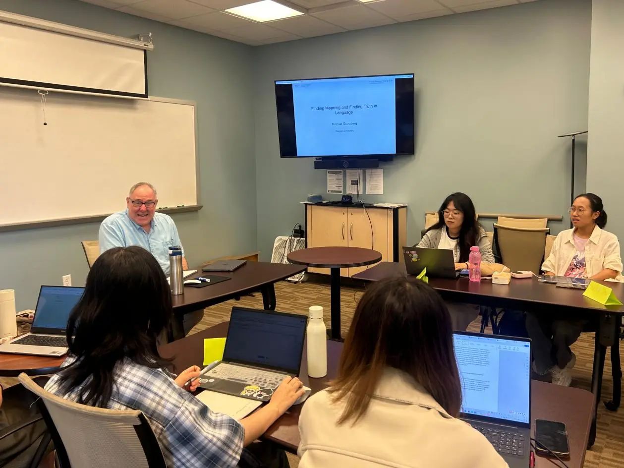 下午,Michael Glanzberg教授以“What is a Language and What is Meaning?”为题,带领同学们进入到语言哲学这一领域。Glanzberg教授通过一系列例子,指出了“语言(Language)”与“含义(Meaning)”之间的微妙关系,语言作为一种表达含义(Meaning)的方式,不仅具有其独特的表意通道,还能够直接执行行动。教授进而展开一系列的追问,例如:语言是一种文化社会的、后天习得的沟通机制,还是个体心理的、与生俱来的认知能力?教授详细讲解了不同语言中语言表达的不同层次、不同规则,以及各异的语言中所蕴含的普遍的语法规则。在Glanzberg教授的带领下,同学们探索了解释单词含义的方法,对“单词的含义如何决定更大句子的含义”这一问题进行了探讨。Glanzberg教授的讲解将语言视为人类区别于其他物种的一个重要特质,在授课过程中,教授不仅针对问题,而且穿插介绍了Paul Grice、J.L.Austin和Noam Chomsky 等著名学者的语言哲学理论。整个课堂不仅有激烈的讨论,还蕴含丰富的语言哲学知识。Glanzberg教授语言风趣幽默,深受同学们的喜爱。