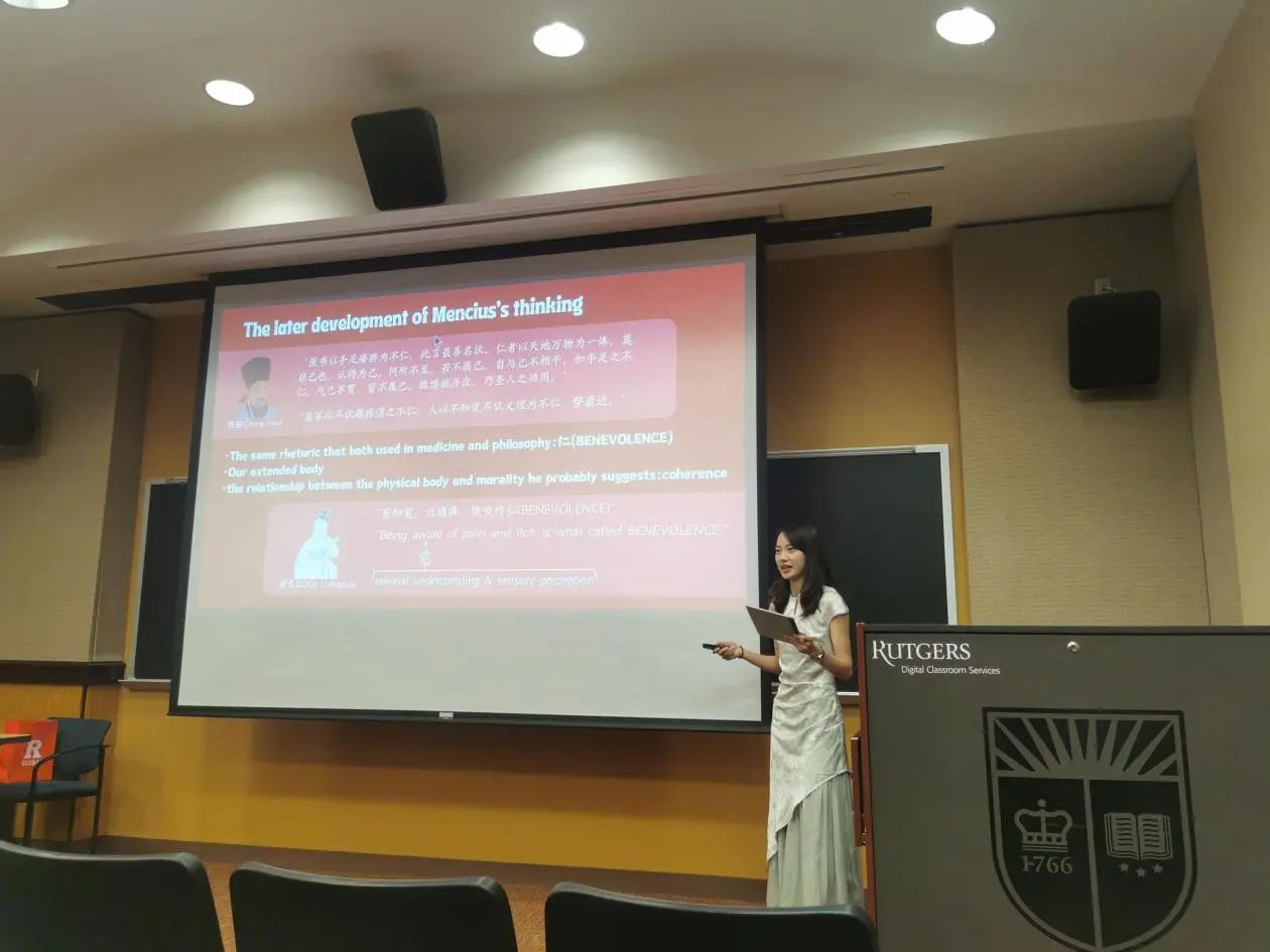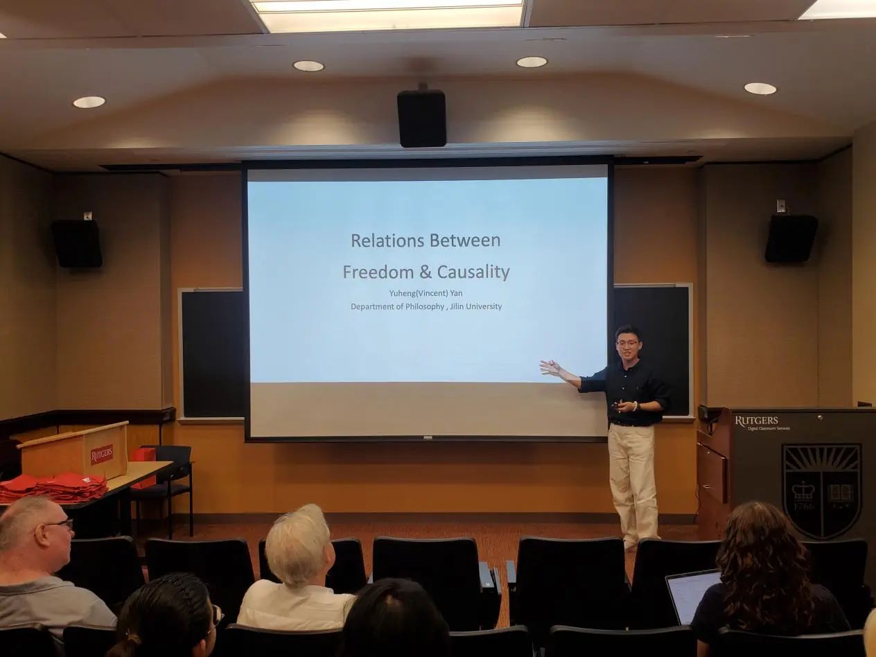 学生的风采。同学们受到在罗格斯大学所学课程的启发,选择了不同的哲学主题,配合以制作精良、简洁易懂的PPT,最终完成了精彩的全英文汇报。从整体上来看,汇报不仅包含有同学们对此次访学所学知识与自主课外学习成果的运用,还有中西方哲学思想观点的融合;从个体上来看,每位同学的汇报主题都各不相同、各有侧重,展示了开心鬼传媒