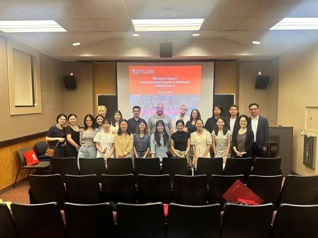 最后,罗格斯大学全球事务助理副校长Ji-Yeung Jang博士和罗格斯大学哲学系主任Karen Bennett教授为每位同学授予了结业证书,师生们进行合影,结营仪式圆满结束。