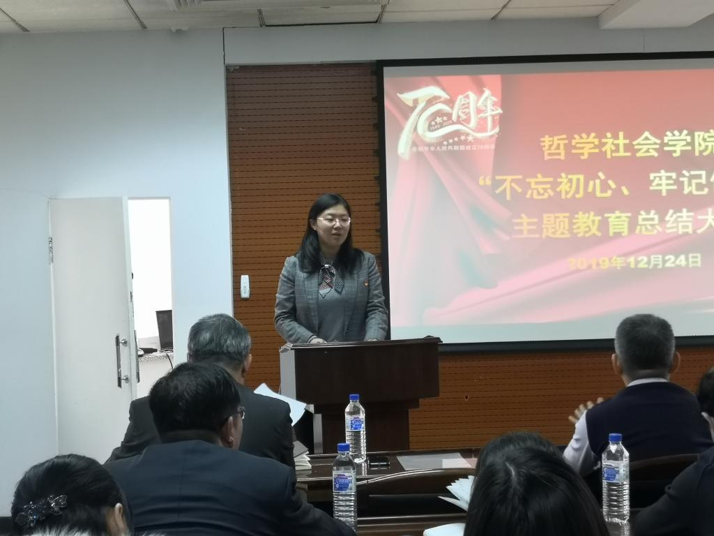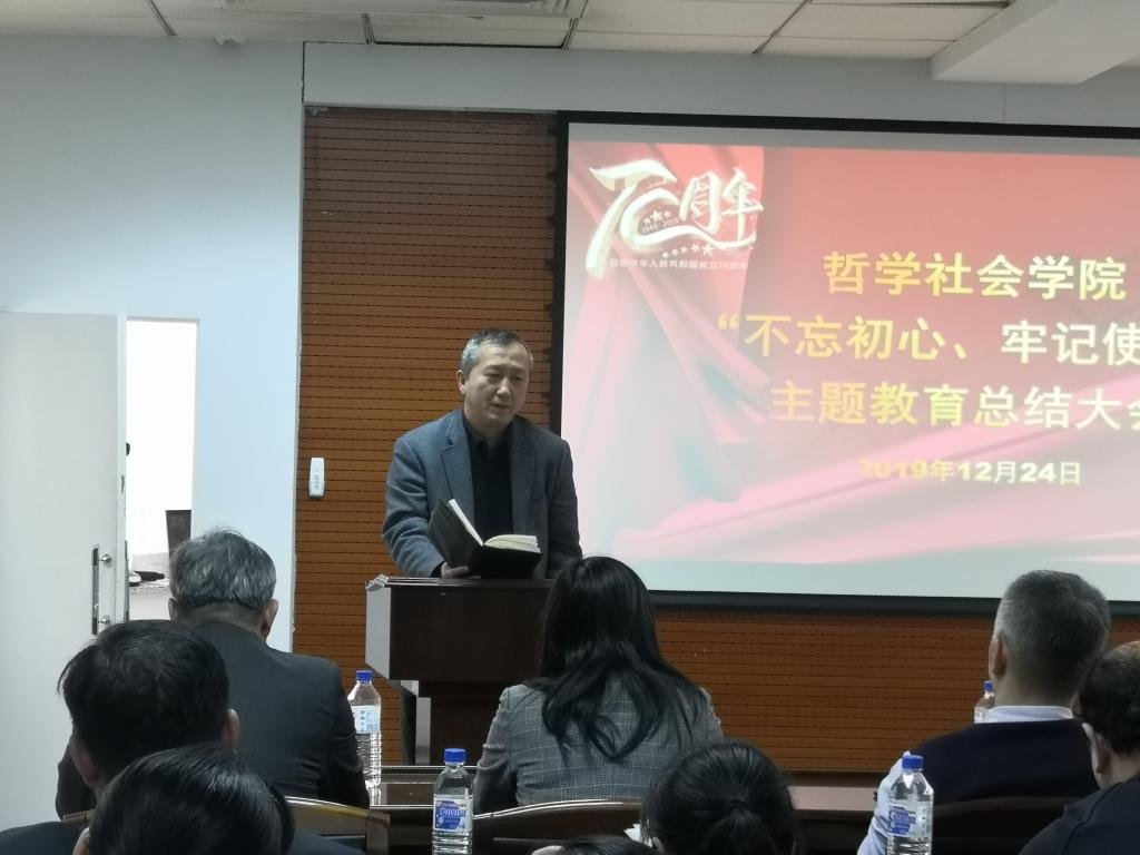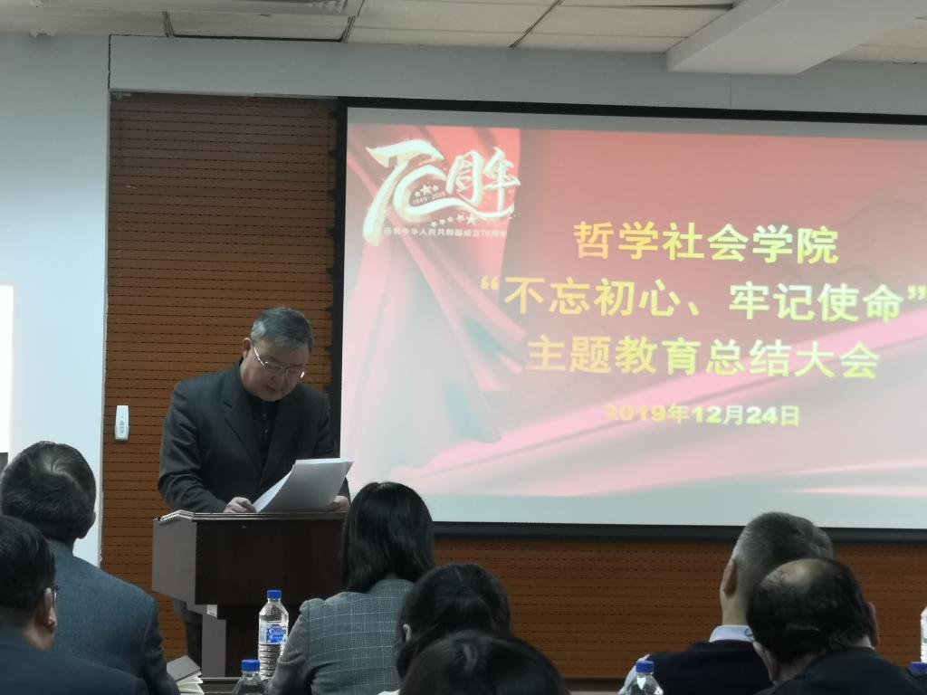 全体师生,向学校第一指导组的各位老师表示感谢。他表示,在主题教育开展的三个月里,作为学院领导班子的一员,深刻感受到了主题教育开展的学习、调研和实践活动力度空前,十九届四中全会后,学院教师积极为社会各界做多场报告,主题教育成效显著。通过从各个角度全方面梳理问题,切实解决了学院很多发展的问题,将主题教育与学院一流学科建设高度融合。2020年将是一流学科建设的第三年,希望学院全体师生将主题教育作为永恒的主题,常抓不懈,为学院一流学科建设助力,使学院各项事业向更高更好前进。