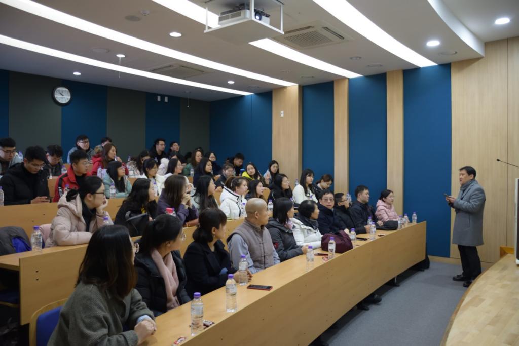 12月4日下午,访问团与首尔大学的中国留学生会开展了国外学习交流座谈会。期间,在欣赏中国留学生会宣传视频的过程中,学生们感受到了中国留学生们在异国他乡求学与生活的不易。之后,郑琴等首尔大学留学生代表介绍了首尔大学严谨踏实的学风,过硬的学术能力,全方位的综合素质,以及首尔大学学生的生活、学习情况。最后,大家就专业学术研究、留学政策与经验、留学环境适应等各个方面进行了深入的分组交流。