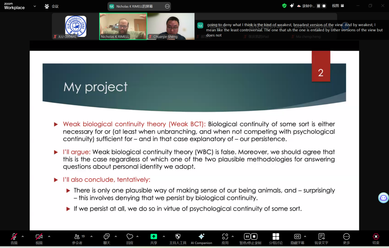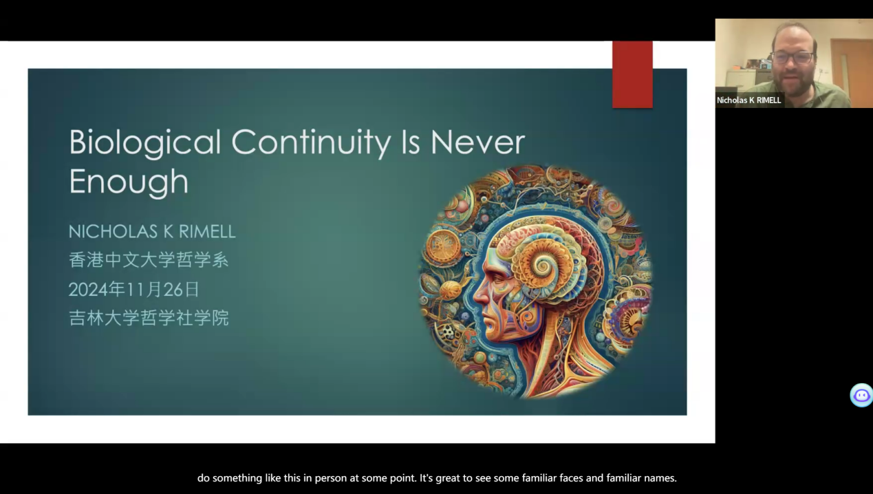 “国际合作平台学术讲座”第48讲——“Biological Continuity Accounts of Personal Identity”(生物连续性视角下的个人身份)在线上成功举办。香港中文大学助理教授Nicholas Rimell担任本次讲座主讲嘉宾,开心鬼传媒