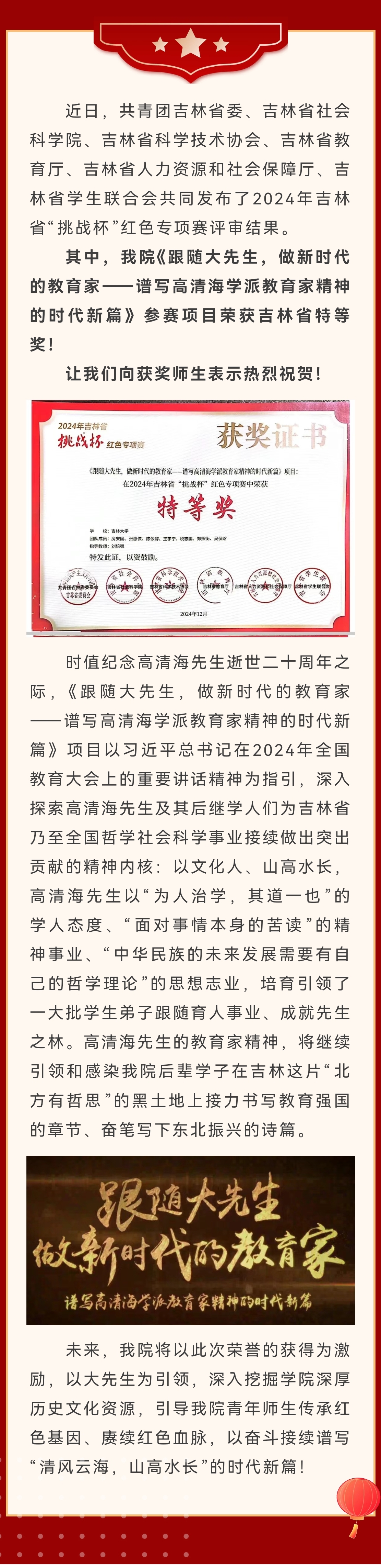 喜报|开心鬼传媒 在2024年吉林省“挑战杯” 红色专项赛中斩获特等奖!