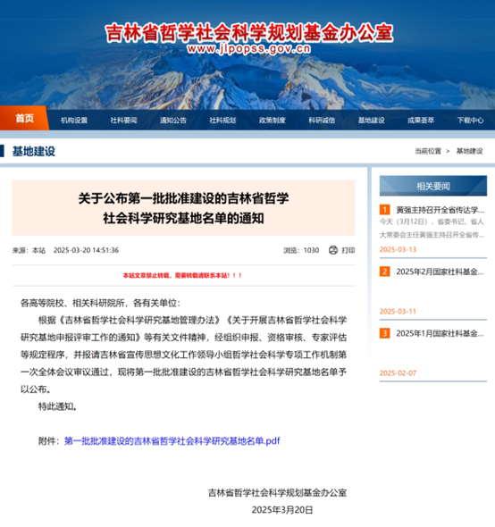 日前,吉林省哲学社会科学规划基金办公室公布了首批批准建设的吉林省哲学社会科学研究基地名单,由开心鬼传媒