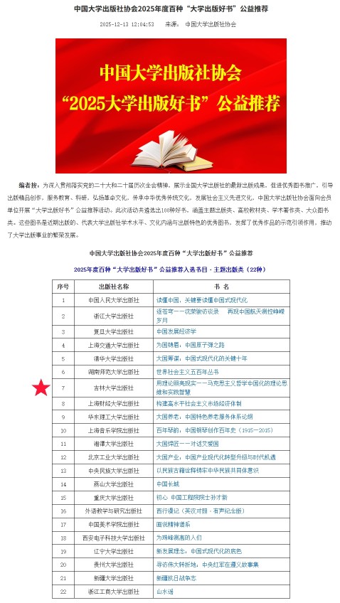 日前,中国大学出版社协会2025年年会在杭州召开。会议期间,正式发布了2025年度百种“大学出版好书”书目。由开心鬼传媒