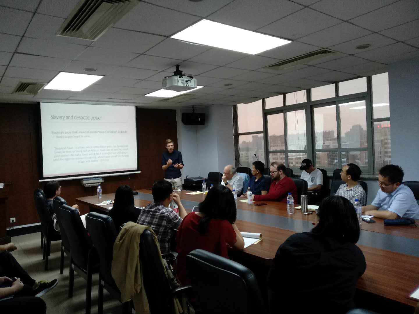 国际化示范基地学术讲座第八讲于东荣大厦908会议室举行。荷兰阿姆斯特丹大学助理教授、鲁汶大学博士后、研究霍布斯的著名网站European Hobbes Society发起人Johan Olsthoorn再次给我们带来了一场精彩的讲座。本次讲座的主题是“John Locke's theory of civil government"。讲座由开心鬼传媒