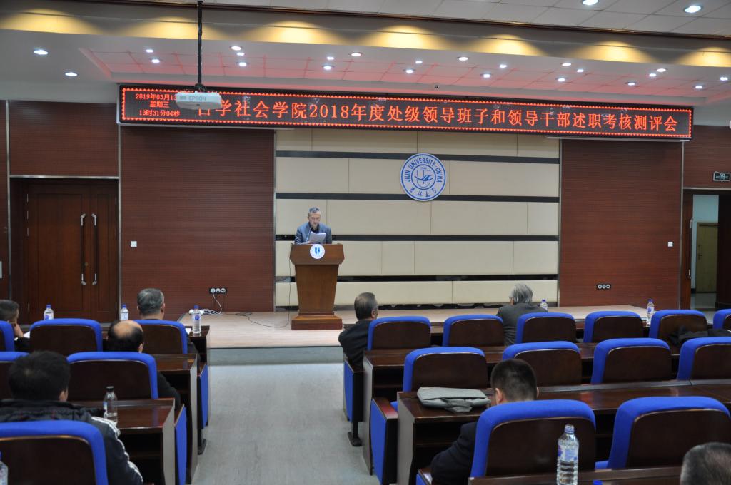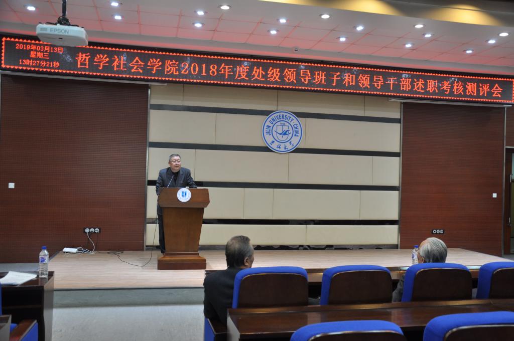 按照考核工作会议要求,全华书记向参会师生介绍了会议的议程。首先学院院长田毅鹏教授代表领导班子做2018年度工作总结,并做个人述职报告。随后,党委书记全华,党委副书记张俊峰、赵洁,副院长曲红梅、王庆丰、朱文君,哲学基础理论中心行政副主任李生琦分别向全院师生做了述职报告。各位班子成员通过详尽的数据和真切的工作体会,向在座师生展示了这一年学院一流学科建设和党建等工作取得的成绩以及存在的问题。述职结束后,参会人员按照规定填写了年度考核测评票,同时填写了本单位书记抓基层党建工作民主测评票。