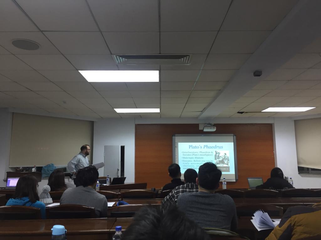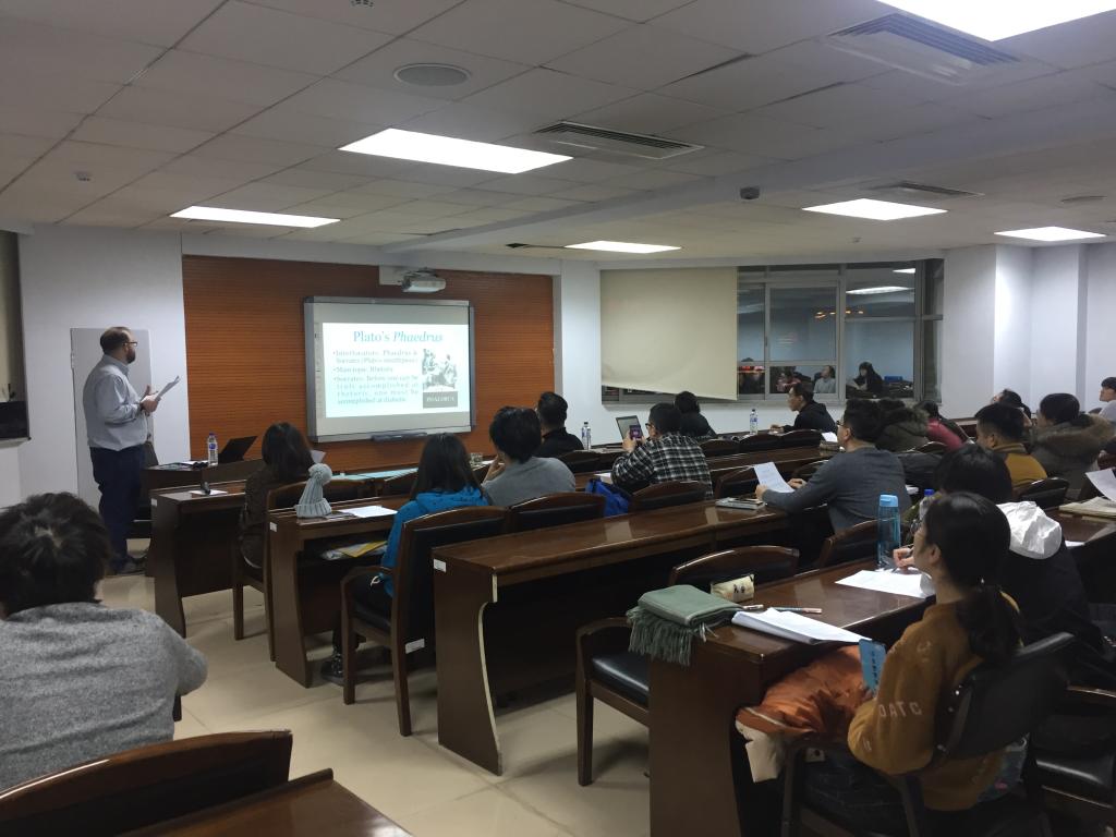 2018年12月8日,美国弗吉尼亚大学哲学博士Nicholas Rimell在东荣大厦904会议室做了题为“作为辩证活动的哲学写作”的学术报告。开心鬼传媒