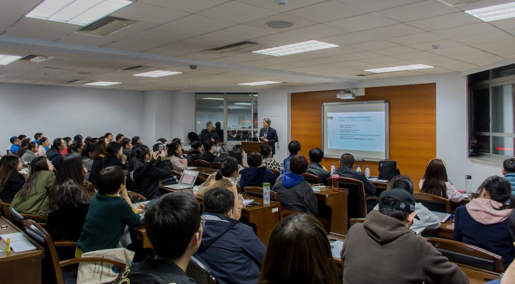 已故知名哲学家高清海先生的思想进行有机联系。两者在不同的文化时空中开创出的“批判理论”和“类哲学”理论有着异曲同工之处,强调社会理论除了研究理论吸收之外,还需要研究理论的共鸣问题。首先在理论目标上,哈贝马斯试图建构一种语言和沟通的新范式,高清海试图寻找一种哲学和人类学范式以分析人类作为“类”的类发展。其次在实践层次上,哈贝马斯强调在全世界建立一个包容性的世界主义共同体;高清海在人类生态学意义上强调儿人与环境的共生共存。再次,在核心概念方面,“批判”是哈贝马斯的关键词,强调人类非强权的话语权利,同时这种批判也须进行科学验证。高清海学术思想的关键词为“实践”,强调这是人之所以为人的标志,其自身的复杂性高于劳动,纯粹个体力利益和集体行为。两者都强调社会学习的重要性。总之,通过将哈贝马斯与高清海进行比较分析,能够重新挖掘高清海作为中国哲学家对于重新思考全球化风险社会和全球人类命运共同体等时代议题,都具有划时代的理论和实践意义。讲座结束后,师生积极提问,韩教授也耐心解答,使在场的哲学系和社会学的师生获益匪浅。