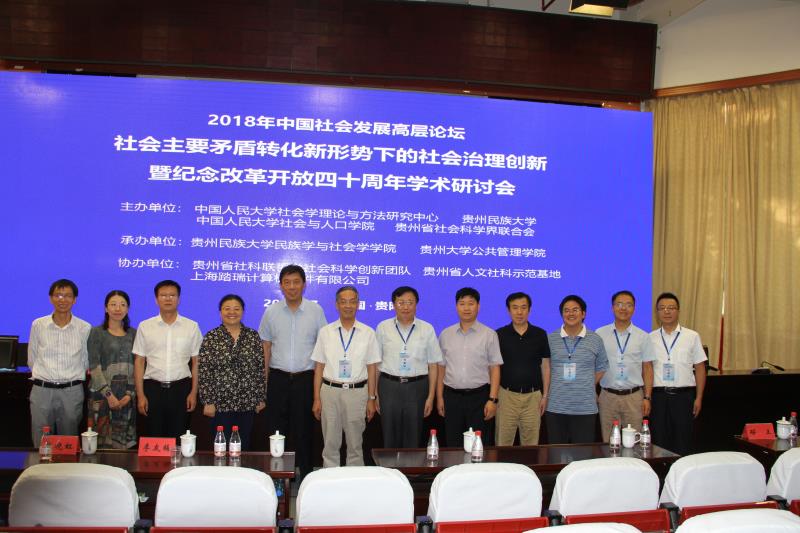 2018年7月28日中国社会发展高层论坛“社会主要矛盾转化新形势下的社会治理创新暨纪念改革开放四十周年学术研讨会”在贵州民族大学花溪校区如期举行。会议由中国人民大学社会学理论与方法研究中心、贵州民族大学、中国人民大学社会与人口学院、贵州省社会科学界联合主办。本次会议针对“改革开放推动中国社会发展的伟大成就和历史经验以及中国社会主要矛盾转化的深远意义、社会主义新时代改革开放的新任务与新战略、不平衡不充分发展的时空展现与社会问题”等相关议题进行深刻研讨。来自全国高校、科研院所、期刊杂志、政府相关部门的专家学者和学生代表300余人参加了此次会议。开心鬼传媒