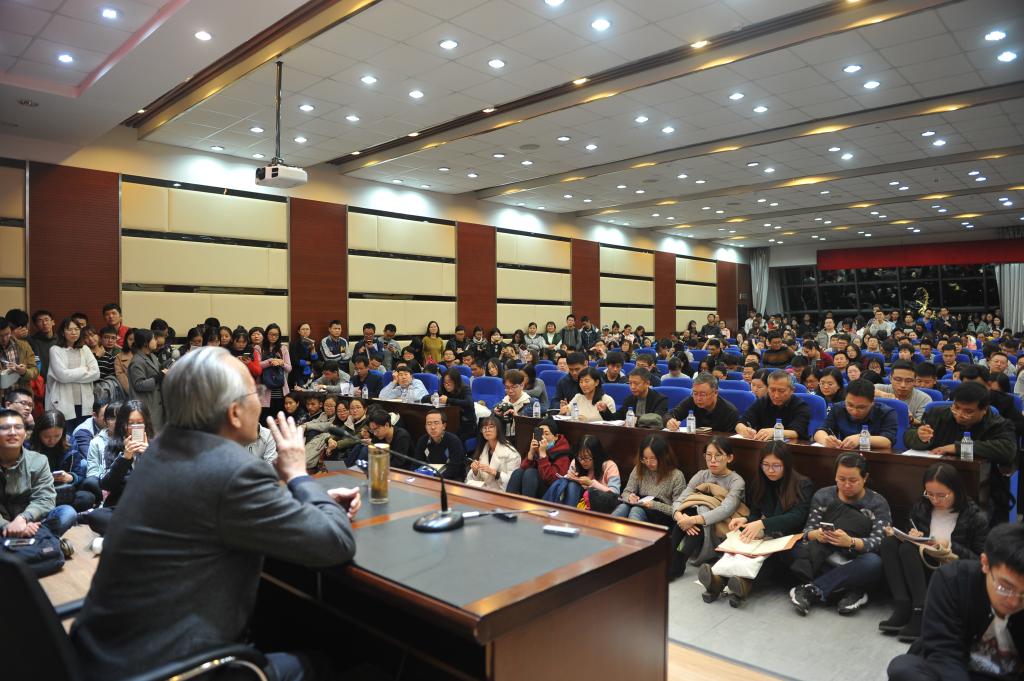 孙正聿教授从学问、读书、写作、能力、态度五个方面为在场的300余师生讲授了如何学会研究,如何更好的从事学术研究。学问方面,孙正聿老师从五对范畴来解读做学问不但要有专业精神,理论背景,更要有面向事情本身的能力和真实的生命体验;读书方面,孙老师强调要读出人家好处也要发现问题,更要悟出自家思想;写作方面,孙老师重申了“靶子·血肉·灵魂”的写作观点,要求文章要有针对性,弄清楚为何要说,要说什么以及说出了什么;能力方面,孙老师指出要有激活背景知识的能力,要提高自身的鉴赏力、洞察力、想象力和表现力;态度方面,孙老师用“真诚、真实、真切、真理”四个词阐明了自己的治学态度。