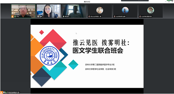 第二医院(以下简称吉大二院)联合组织了题目为“推云见医,拨雾明社”的医文学生联合班会,遵从疫情防控措施要求,此次交流会以线上视频会议形式开展。