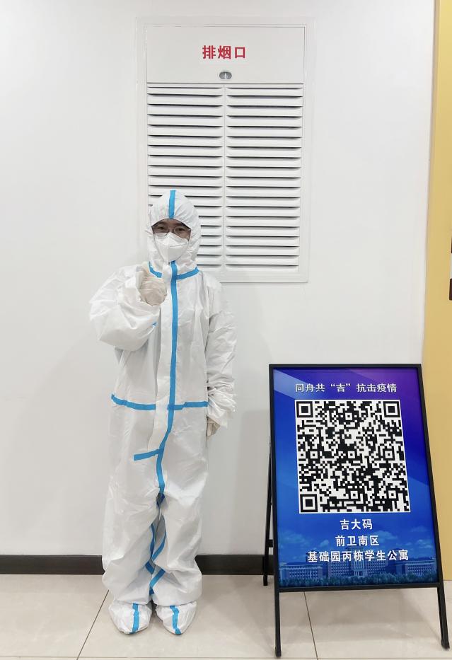 3月13日学校发布封寝通知,魏萌在第一时间主动报名成为了一名志愿者,在于洋老师的安排下有序组织北三公寓的各项学生事务,直到离校前的最后一天,与大家站在一起的这段时间可能会是魏萌研究生生涯中最难忘的时刻。两个月以来,她先后承担了楼层志愿者、跨楼层志愿者和卡点志愿者的工作,为尽力做好消毒工作和核酸自测统计工作不间断地每天早起,也一次次从11001寝室走到11065寝室核查人数确认同学们的安全,有过一天发放近十次物资,也自己徒手搬过三十箱水,手上磨茧和胳膊练出肌肉都是这段时间留下的印记。在校生们通过了这场大考,展现出来吉大人的抗疫精神,魏萌也相信,这样的精神会持续支撑着她走过今后每一个艰难的时刻。