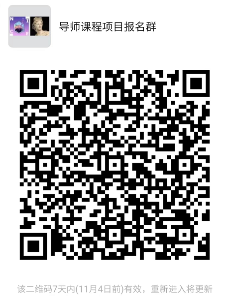 请申请人于2022年10月31日(星期一)上午11:00点前将报名申请表(附件1)、学生证扫描件发送邮件至[email protected](注明:导师课项目申请+专业+姓名),同时扫描以下二维码,加入微信群,以便接收后续通知。