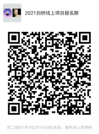 请申请人于2021年2月17日下午4点前将报名申请表(附件2)、外语成绩证书扫描件、学生证扫描件发送邮件至[email protected](注明:“2021年剑桥项目申请+姓名”),同时扫描以下二维码,加入微信群,以便接收后续通知。