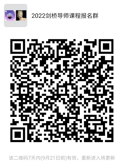 请申请人于2022年9月16日(星期五)上午11:00点前将报名申请表(附件2)、外语成绩证书扫描件、学生证扫描件发送邮件至[email protected](注明:2022年剑桥项目申请+课程方向+姓名),同时扫描以下二维码,加入微信群,以便接收后续通知。