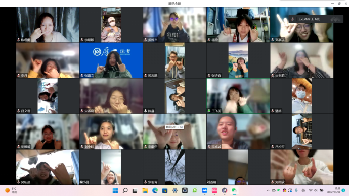 同学们在会议摄像头中看到彼此,相互问候,气氛轻松活跃。心理委员鼓励大家在团体心理辅导过程中保持开放,接纳,尊重的态度,全身心地交流和表达。