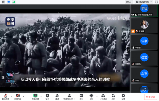 团委于线上组织“弘扬伟大抗美援朝精神”专题学习会。