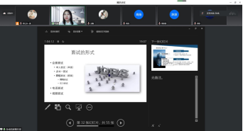 在面试部分的讲解中,孙老师从面试的形式、面试的内同、面试的准备等方面为大家进行讲解,向同学们重点介绍了无领导小组面试的注意事项。同时,孙老师指出了面试中的常见问题,如自我介绍、个人信息、职业理想、薪资待遇等方面的问题,从中分析HR的思维,给大家提出了应对建议。